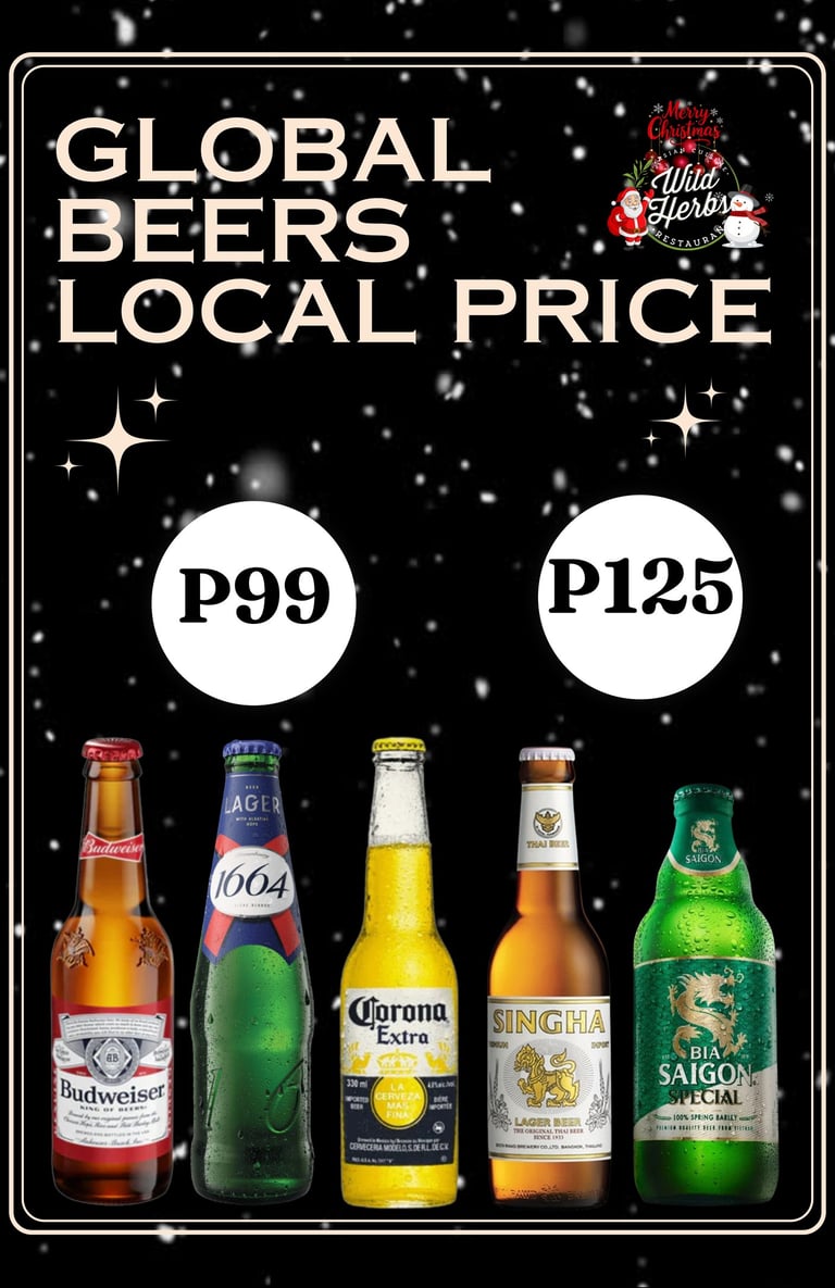 Don't forget to book your festive event with us either by using our contact form on this website or by calling us directly using any of our restaurant contact numbers. Enjoy any local beer for only P70 ! daily from 12-6pm (excluding SM Negra). We now have Kronenbourg 1664, Corona & Budweiser for only P99 a bottle whilst stocks last. Have a Thai Christmas with Singha Thai beer for only P125 a bottle !
